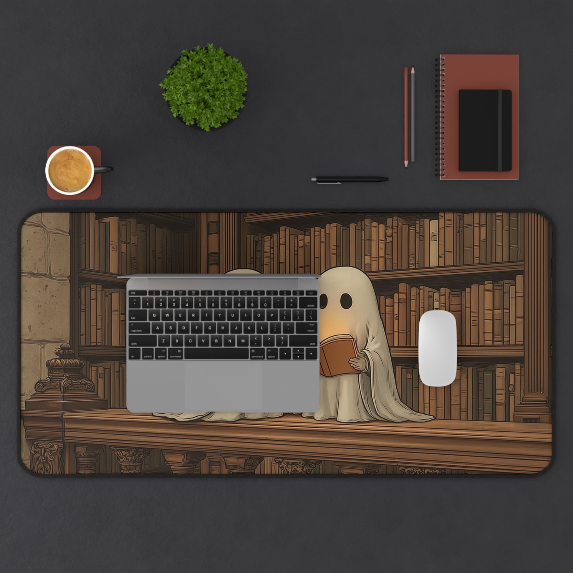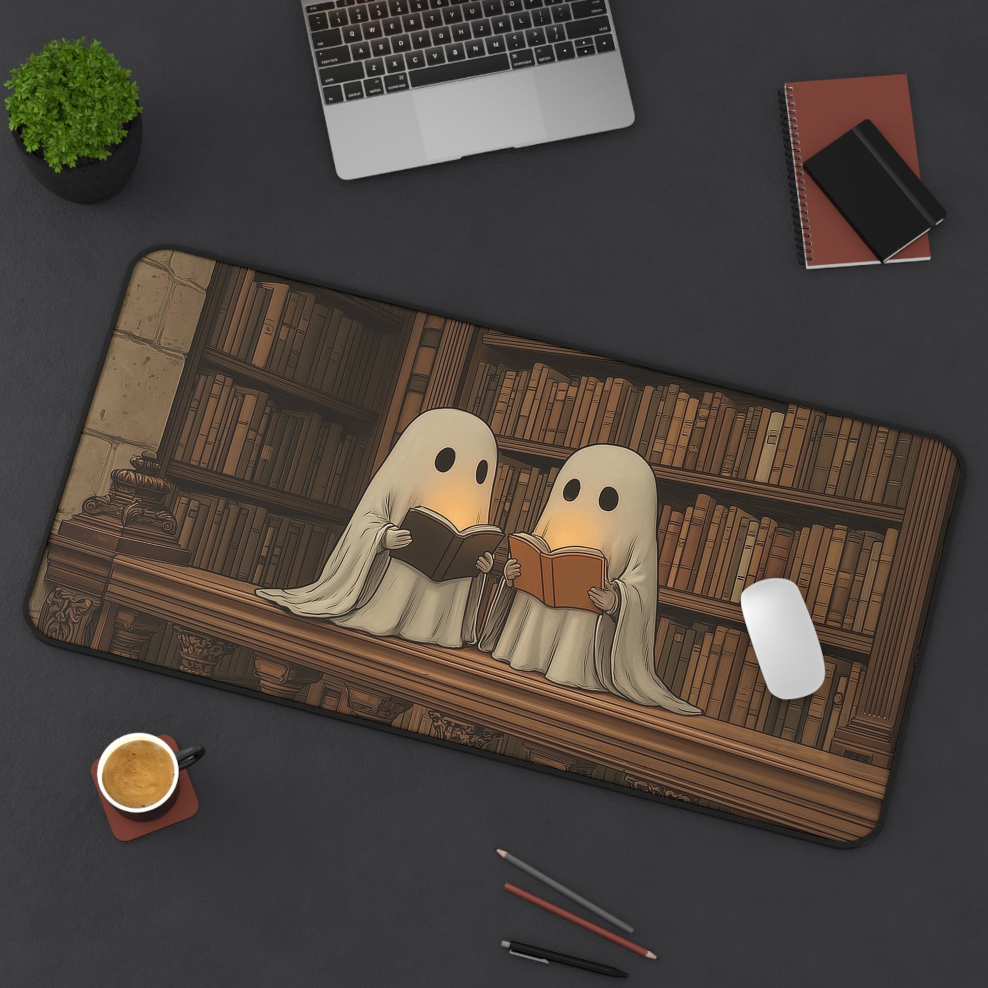 Bookworms Ghosts Desk Mat, Halloween Vibes Mouse Pad XL