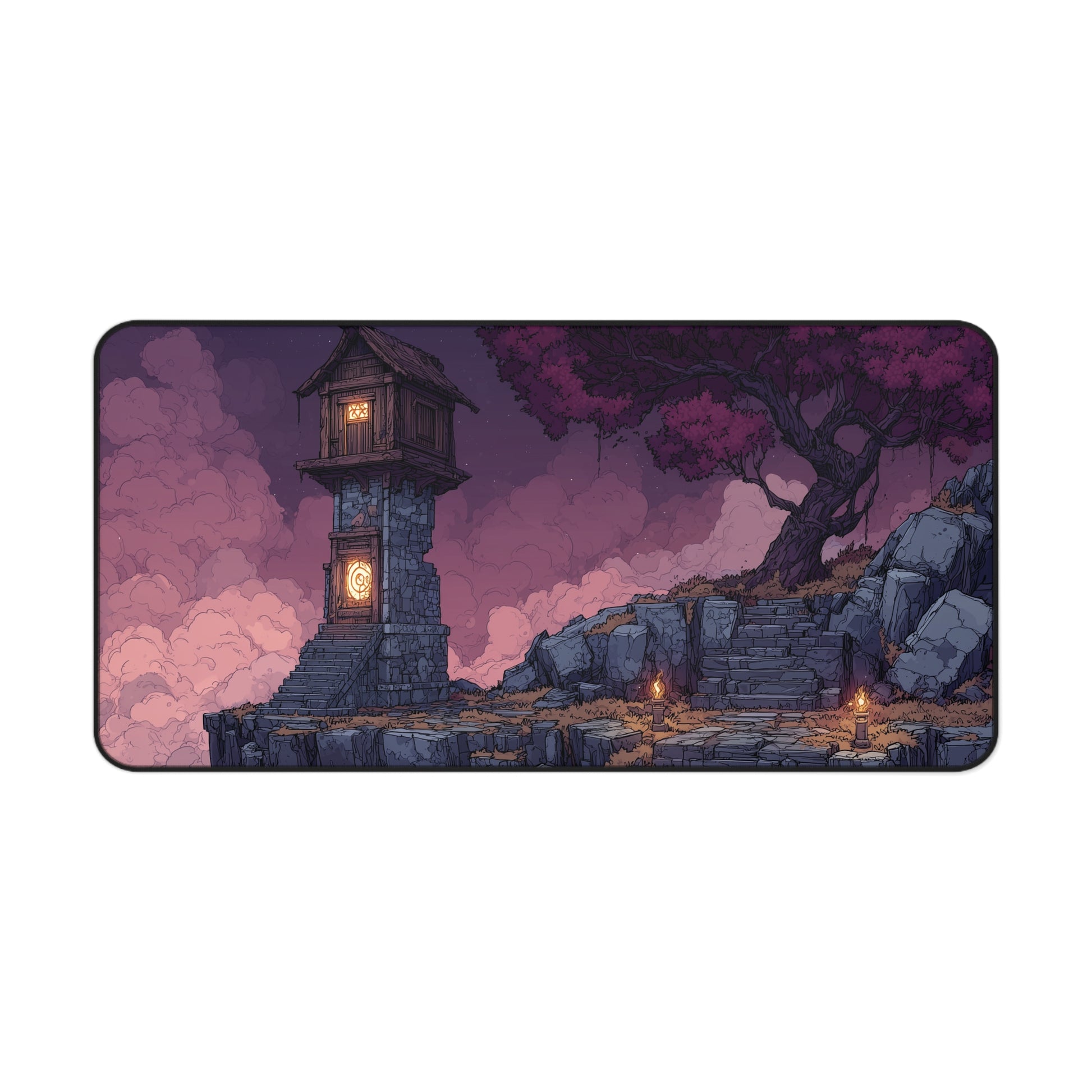 Level up your setup with this stunning pixel art desk mat – perfect for gamers, creatives, and fantasy lovers. The artwork features a mystical stone tower under a violet sky, surrounded by glowing torches and ancient stairs. Whether you're deep in a game or working late, this XXL mouse pad gives your space that atmospheric vibe you've been missing.