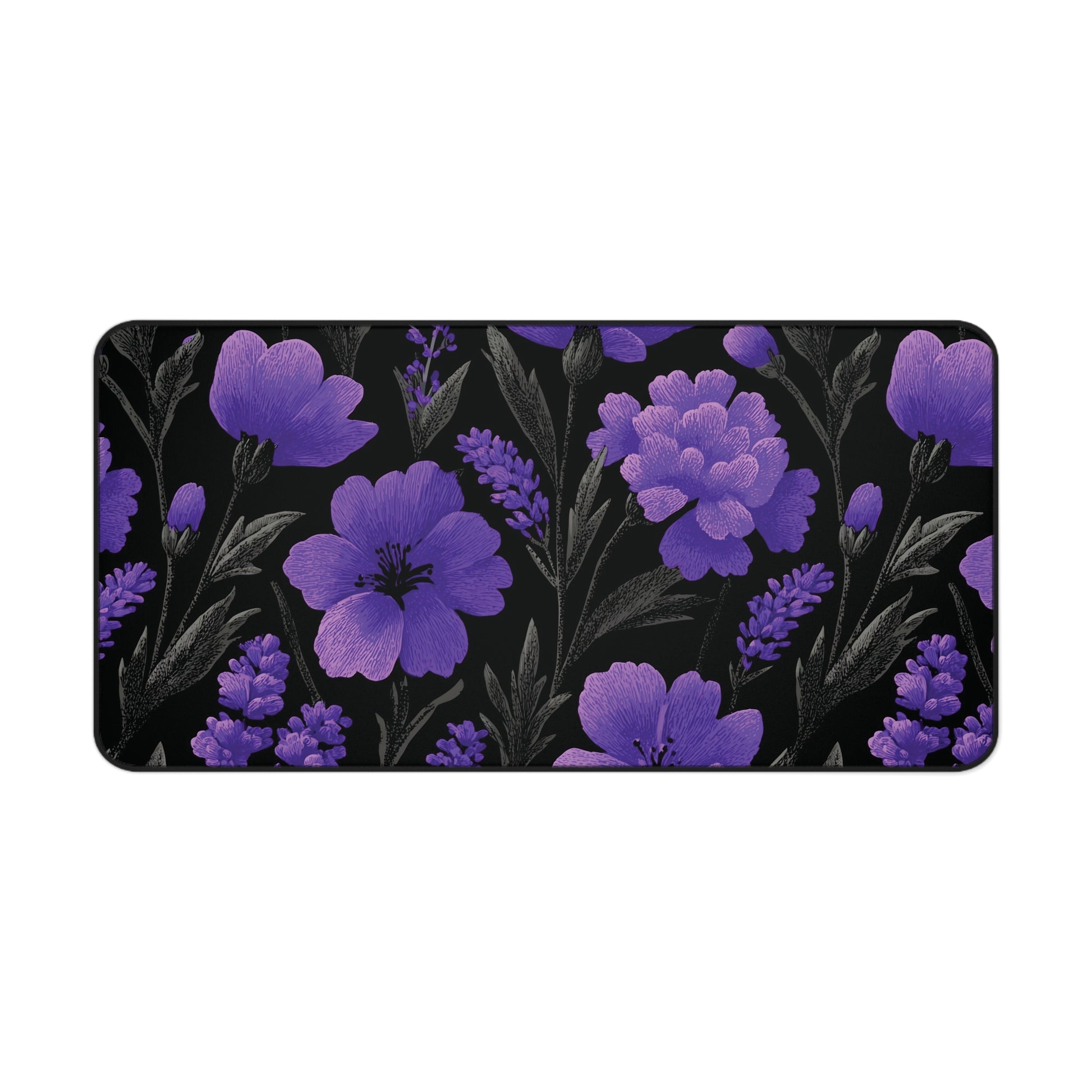 Floral Desk Mat Purple Moody, Gothic Flowers Mouse Pad