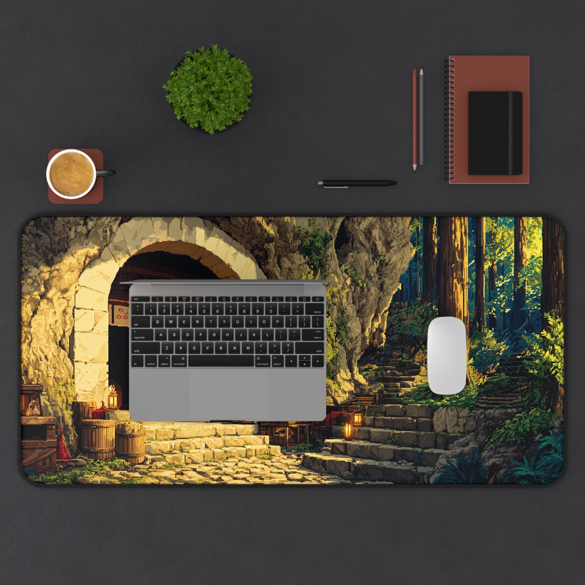 Pixel Art Desk Mat: Forest Cave Mouse Pad