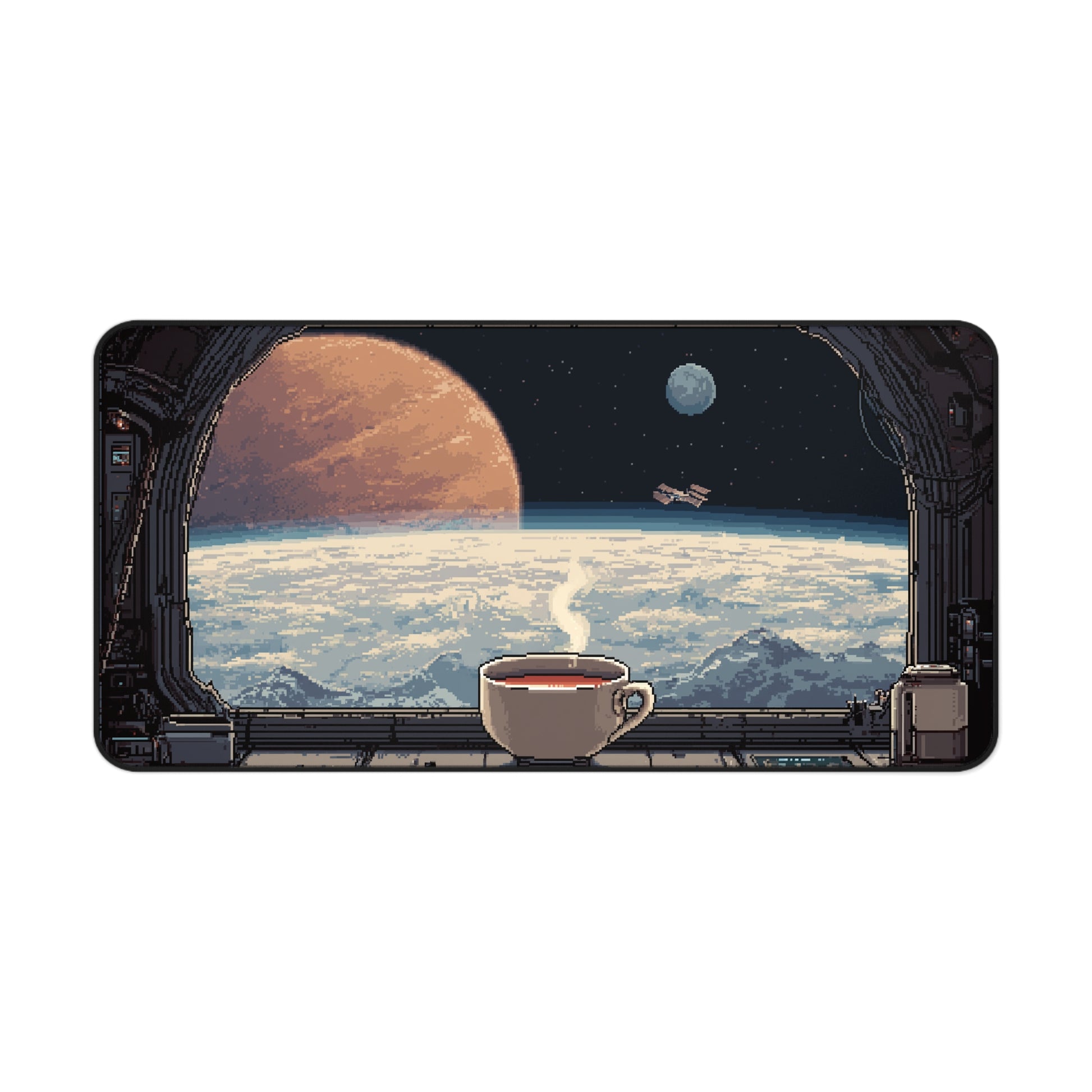 This pixel art desk mat brings a cozy sci-fi dream right to your desk.