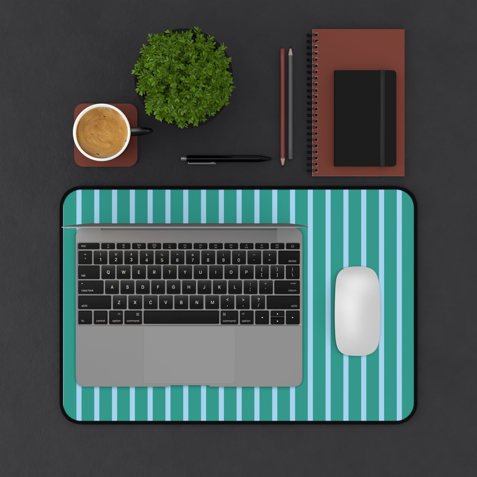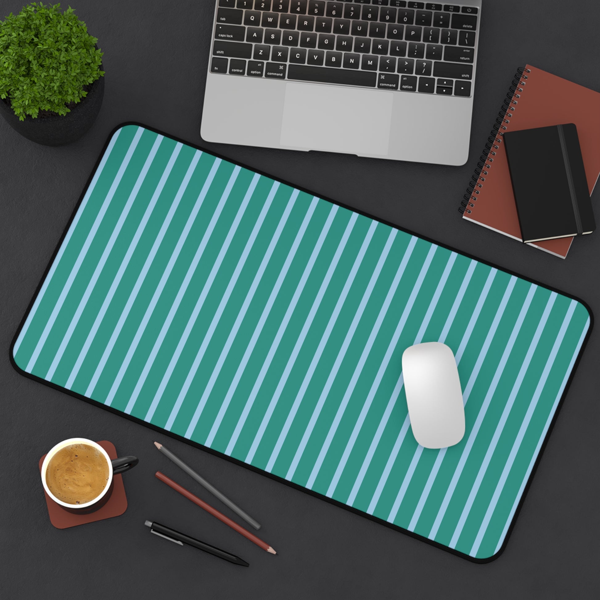About Our Teal and Light Blue Striped Desk Mat
