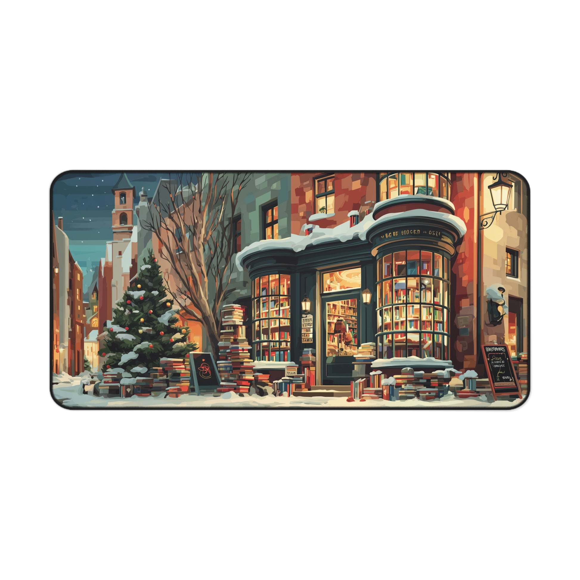 Winter Bookstore Desk Mat, Serene Christmas Desk Pad