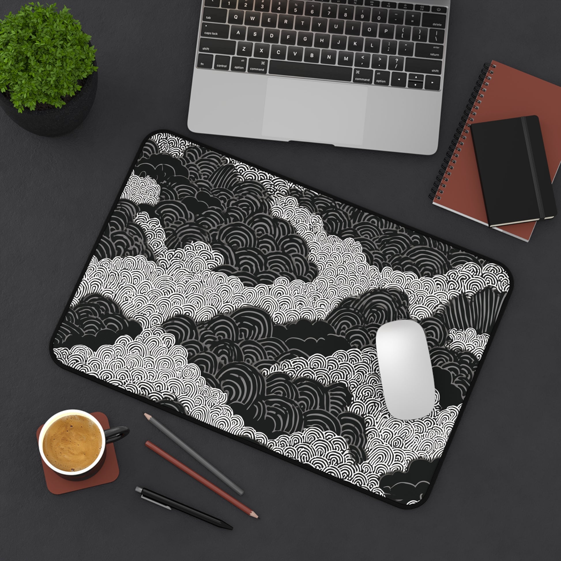 About our Zen Clouds Desk Mat: Black & White Mouse Pad with Japanese Art